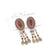 Aretes elaborados a mano con herrajes bañados en oro, tejidos con mostacillas y cristales en color vinotinto y piedras naturales jaspe cebra rosa.