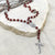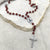 La cornalina aporta un tono cálido y profundo que resalta la elegancia de esta camándula, convirtiéndola en una pieza única y especial.