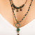 Collares en mostacillas y cristales verde militar y café, con detalles en cuero artificial y herrajes envejecidos. Su diseño versátil te permite usarlos juntos o separados, añadiendo un contraste sofisticado a tus prendas básicas. Perfecto para quienes aman los accesorios con personalidad y estilo.