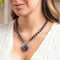 El Collar Noa es un conjunto delicado y femenino, elaborado completamente en piedra natural amatista con cuentas de 8 mm y chaquiras plateadas. Su broche central de acero y el dije en forma de corazón en amatista aportan un toque llamativo y elegante. Incluye aretes a juego en amatista y acero plateado, siendo hipoalergénico y perfecto para realzar tu look con suavidad y estilo.