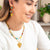 El collar Soléa, hecho en acero dorado, combina un dije grande en forma de corazón con cristales, piedra natural ágata y chaquiras en tonos vibrantes. Su diseño alegre y único transforma prendas básicas, convirtiéndolas en piezas que atraen todas las miradas. Perfecto para quienes desean un accesorio que resalte su estilo con un toque original y lleno de vida.