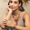 El combo incluye collar con herrajes en zamak con baño de oro con piedras naturales, jaspe cebra rosado, cuentas en nácar, aretes con broche de seguridad en acero dorado con piedra natural jaspe cebra rosa, aretes gramdes en bronce con...