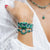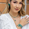 El combo incluye, topos, collar con topos y pulseras, set elaborado a mano con mostacillas, cristales, piedra natural malaquita y cadena de acero plateado.
