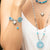 Set de pulseras elaboradas a mano con mostacillas y cristales, piedra natural agata azul y herrajes en acero plateado.